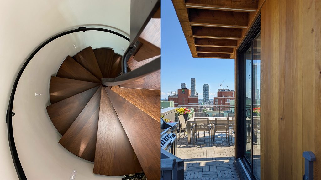 Completed: Project Type: Size: Design Team: 2021 Residential/Hotel 200 sq ft Boxer Architects In tandem with an adjacent penthouse unit, a new spiral staircase was engineered and installed to connect the main living area to the private rooftop terrace above. A dramatic coffered ceiling effect was created by reframing the existing drop ceilings and installing […]